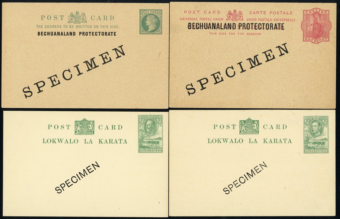 A selection of cards overprinted "specimen" comprising 1901 1d., 1903 ½d., 1907 ½d. and 1d., 1932 ½d., 1938 ½d. and 1944 1d., also 1888 ½d. and 1d. wrappers both handstamped "specimen"; 1907 ½d. card toned though generally good to fine
