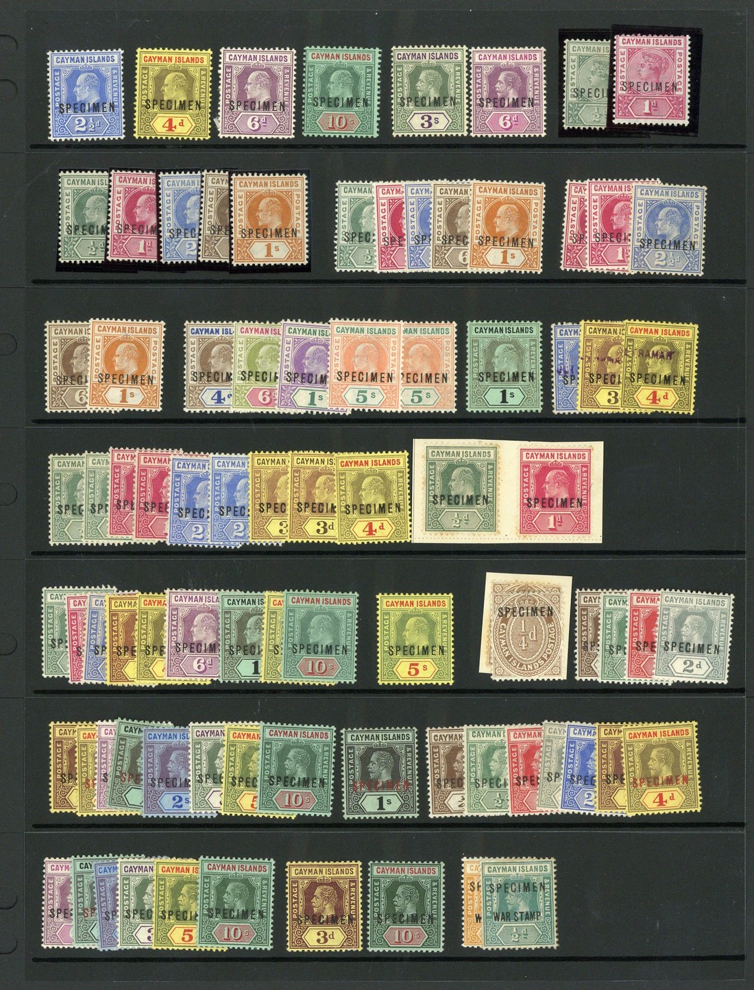 1900-46 selection (205) including 1902-03 ½d. to 1/-, 1907 4d. to 5/-, 1907-09 ½d. to 10/-, 1912-20 ¼d. to 10/-, 1921-26 MCA 3d. to 10/-, Script ¼d. to 10/-, 1932 Centenary ¼d. to 10/-, 1935 ¼d. to 10/- and 1938-48 ¼d. to 10/- each overprinted or perforated "specimen", part to large part original gum; a few minor faults, otherwise fresh and fine. S.G. between 1s and 128s, £3,805