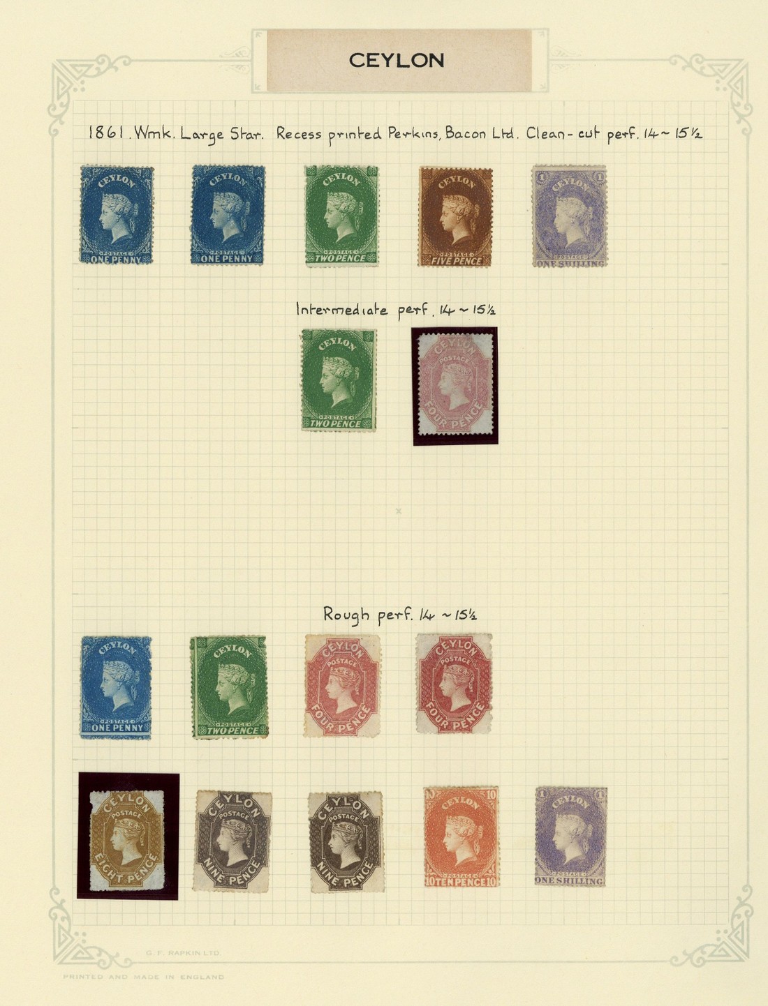 A selection comprising clean-cut and intermediate perf. 14 to 15½ 1d. (2), 2d. (2), 4d., 5d., 1/-, and rough perf. 14 to 15½ 1d., 2d., 4d. (2), 8d. yellow-brown, 9d. (2), 10d. and 1/- unused, a few with gum in places; clean-cut 4d. with faults and rough perf. 8d. with small fault at upper left though generally sound. S.G. 19-35 group, £3,500+