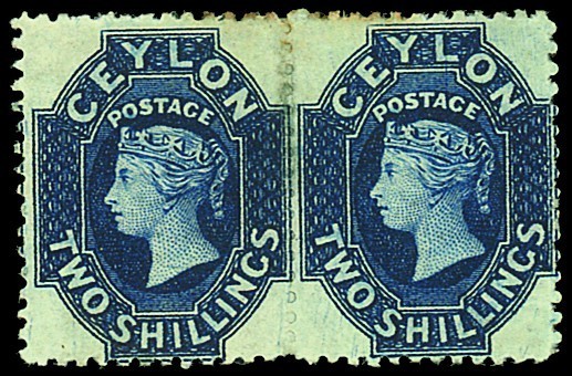 2/- steel-blue horizontal pair, unused with small part original gum, slight wrinkling otherwise fine. S.G. 59, £750. Photo
