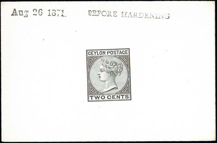 2c. in black on glazed card (92x60mm.), marked "before hardening" and dated "Aug 26 1871.". Photo