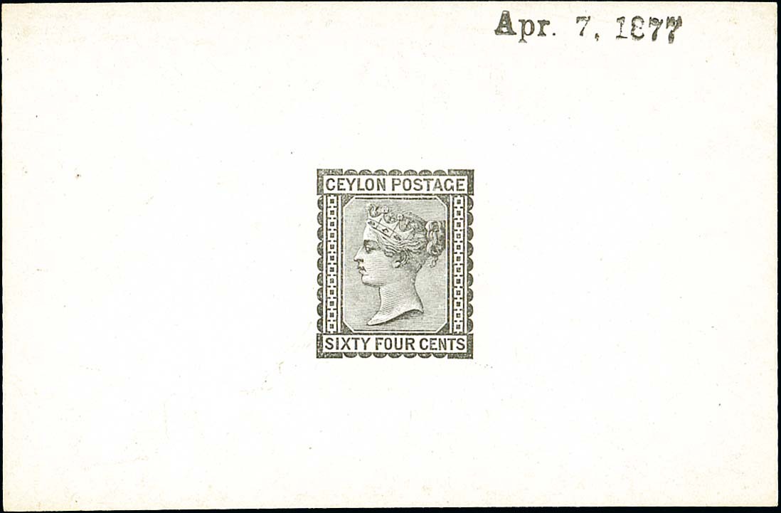 64c. in black on glazed card (92x60mm.), showing some damaged lines at base of neck needing correction, dated "Apr. 7, 1877". Photo