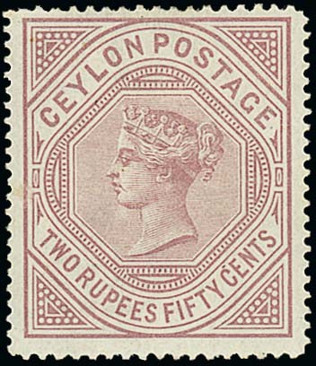 2r.50 dull rose, perf. 12½x14, unused with part original gum. Scarce. S.G. 138, £800. Photo