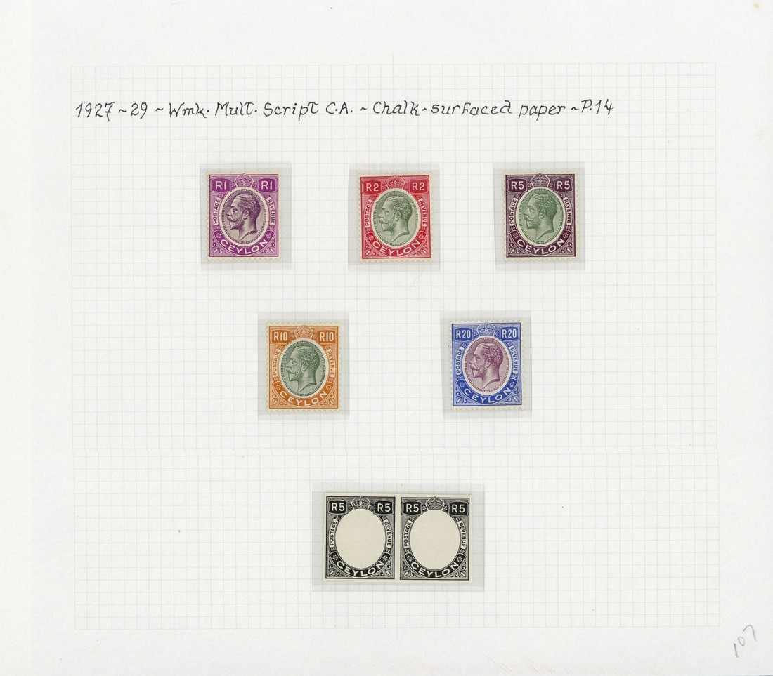 1912-25 range to 10r. (both Dies) and 20r. with shades, five overprinted "specimen" and some to 5r. (2) with inverted watermark, 1918-19 War Tax selection, 1921-32 selection to 20r. and 1927-29 set, mint with hinge remainders in places, also 1927-29 5r. frame plate proof pair in black