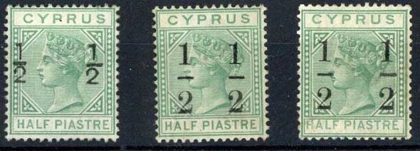1882 CA ½ on ½pi., 1886 (Apr.) CA ½ on ½pi. and 1886 (June) ½ on ½pi., unused, the first and last (diagonal crease) with part original gum, the second regummed. S.G. 25, 27, 29, £1,020
