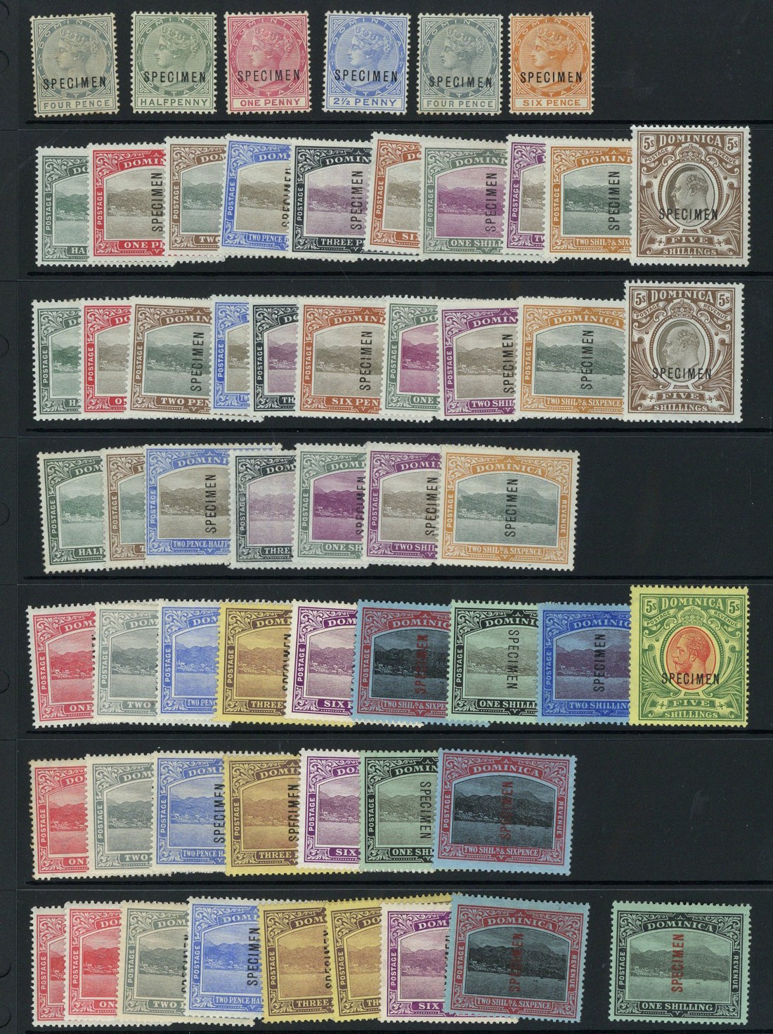 1886-1946 selection (111) with some duplication, including 1903-07 ½d. to 5/-, 1908-20 1d. to 5/-, 1923-33 ½d. to £1, 1935 Silver Jubilee, 1937 Coronation and 1946 Victory sets, each overprinted or perforated "specimen", large part original gum, fresh and fine. S.G. between 20s and 111s, £1,275