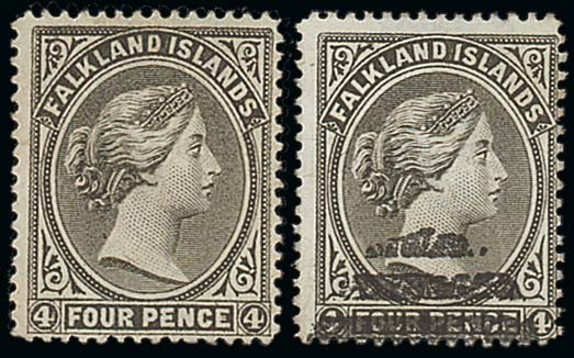 — 4d. brownish black with watermark reversed (2), one unused and regummed, the other used with part oval of bars cancellation at foot; scarce. B.P.A. Certificate (1987) for unused. S.G. 31, £1,150