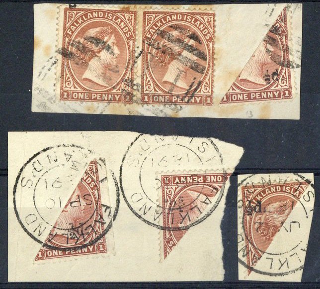 1891 (Jan.-July) ½d. on half of 1d., three piece each with a single (one with unsurcharged 1d. pair); some minor imperfections otherwise fine