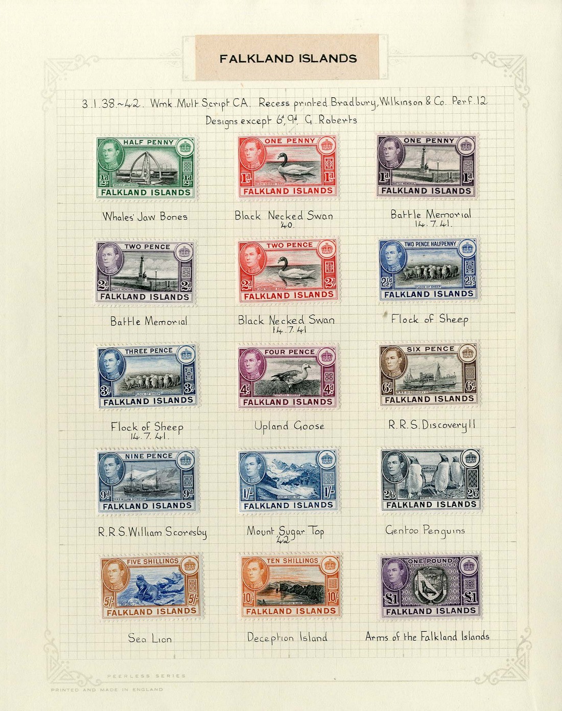 1938-50 ½d. to £1 set of eighteen with additional shades (6) to 5/-; additional 5/- with brown spot on gum, though generally fine mint. S.G. 146-163, £650
