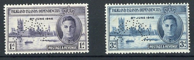 1946 Victory set perforated "specimen" (Type D21), fresh and fine unmounted mint. S.G. G17s-G18s, £375