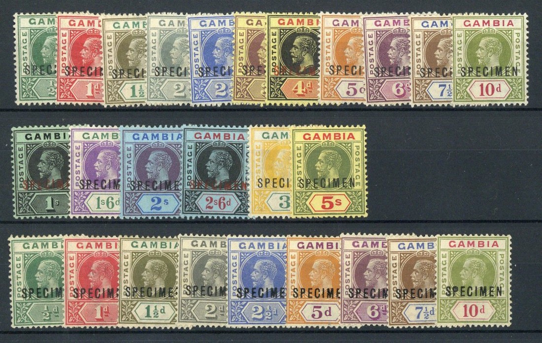 — ½d. to 5/- set of seventeen with duplicate values from ½d. to 2½d. and 5d. to 10d., all overprinted "specimen" (Type D12), part to large part original gum, fresh and fine. S.G. 86s-102s, £375+