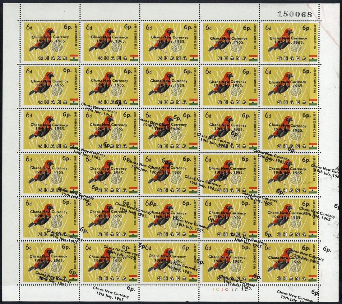 6p. on 6d. complete unmounted mint sheet (5x6) showing additional misplaced surcharge affecting twenty-one stamps, fine. S.G. 385