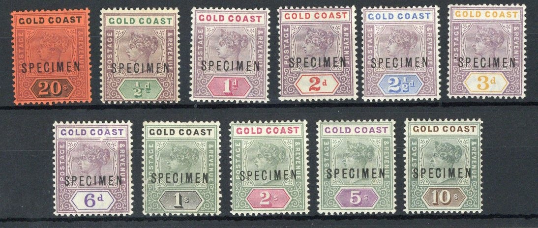 1889-94 20/- dull mauve and black on red and 1989-1902 ½d. to 10/- set of ten, each overprinted "specimen" (D12), large part original gum, generally fresh and fine. S.G. 25s, 26s-34s, £275+