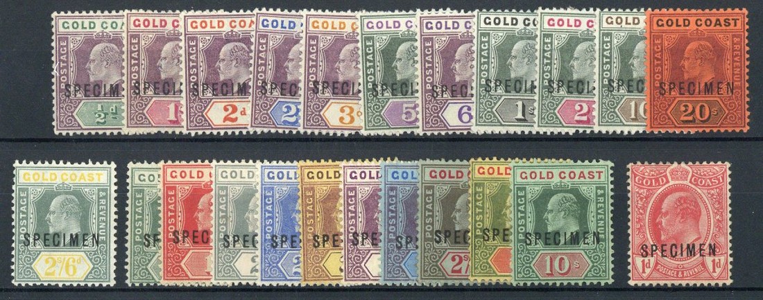 1902 ½d. to 20/-, 1904-06 2/6d. green and yellow, 1907-13 ½d. to 5/-, 10/- green and red on green and 1908 1d. red, each overprinted "specimen" (D12), part to large part original gum, fresh and good to fine. S.G. 38s-48s, 57s, 59s-70s, £1,050