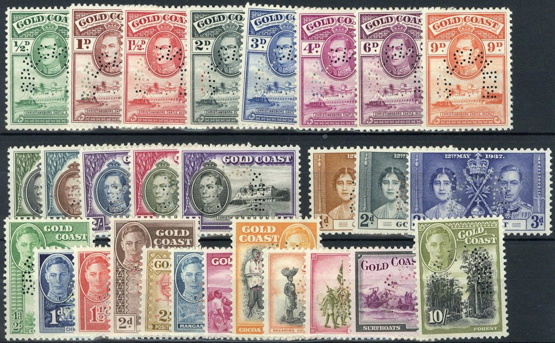 1937 Coronation set, 1938-43 ½d. to 10/-, 1948 ½d. to 10/- each perforated "specimen" (B9), large part original gum, fresh and fine. S.G. 117s-132s, 135s-146s, £870