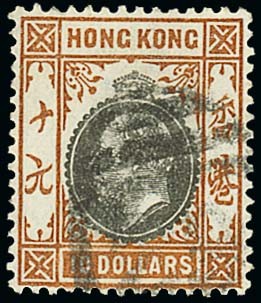 1903 $10 forgery on genuine watermark Crown CA paper, "used". Interesting and very scarce. Photo