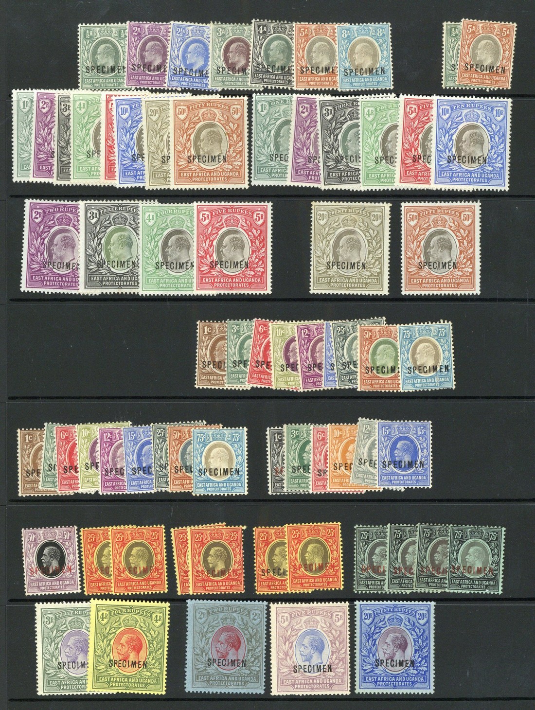 1903-60 selection (101) with some duplication, including 1903-04 ½a. to 50r. less 1a., 1907-08 1c. to 75c., 1912-21 50r. carmine and green (2), 1922-27 values (9) to £1, £75 purple and grey (no gum and washed out) and Postage Dues 1928-33 set less 1/-, 1935-60 set less 10c. and 1/-, each overprinted or perforated "specimen"; some faults though generally good to fine. S.G. between 1s and D11s