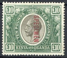 — £10 black and green overprinted "specimen" (D12); heavily mounted, otherwise fine mint. S.G. 100s, £450