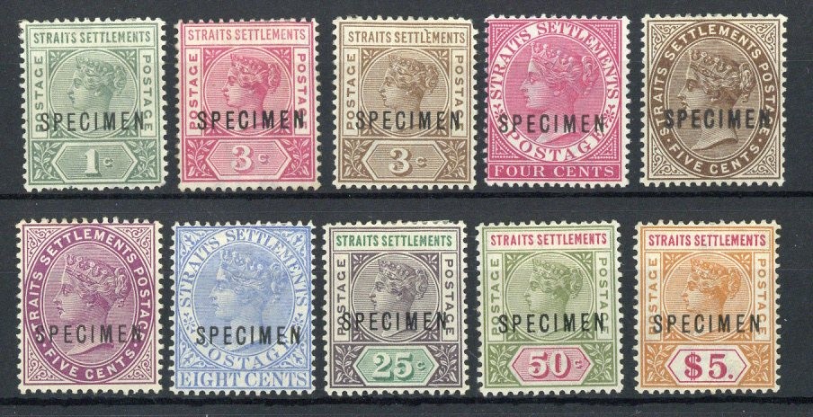 1892-99 1c. to $5 set of ten each overprinted "specimen" ( D12), large part original gum; 3c. with rounded corner, generally fresh and fine. S.G. 95s-101s, 103s-105s, £850
