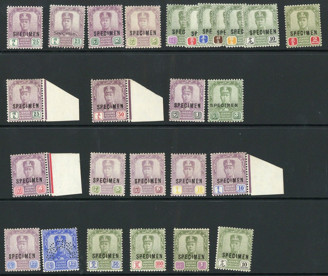 1918-41 selection (26) including 1918-20 values up to $10, 1922-41 $50 and $100 each overprinted or perforated "specimen", part to large part original gum; a few minor faults though generally fresh and fine. S.G. between 89s and 127s, £600+