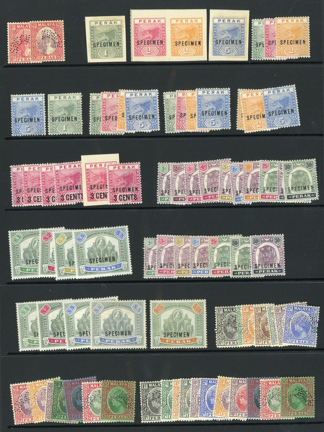1892-1941 selection (79) including 1892-95 1c. to 5c., 1895-99 1c. to $25 and 1935-37 values (14) to $5, each overprinted or perforated "specimen"; a few minor faults though generally good to fine. S.G. between 61s and 115s, £1,445+
