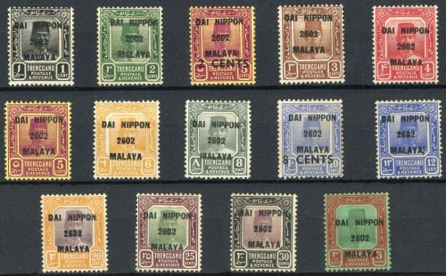 1942 1c. and 2c. on 5c. to $3, fine mint. S.G. J119, 121-132, £326