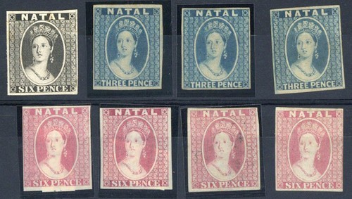 1862 6d. black plate proof on card, 1862 3d. plate proof on Star watermarked paper (3) and 1863 6d. rose plate proof on CC watermarked paper (4); the first creased though generally fine