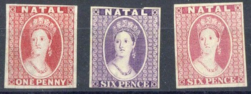 1863-65 CC 1d. bright red, 6d. violet (cut close at two points) and 6d. rose imperforate plate proofs; fine