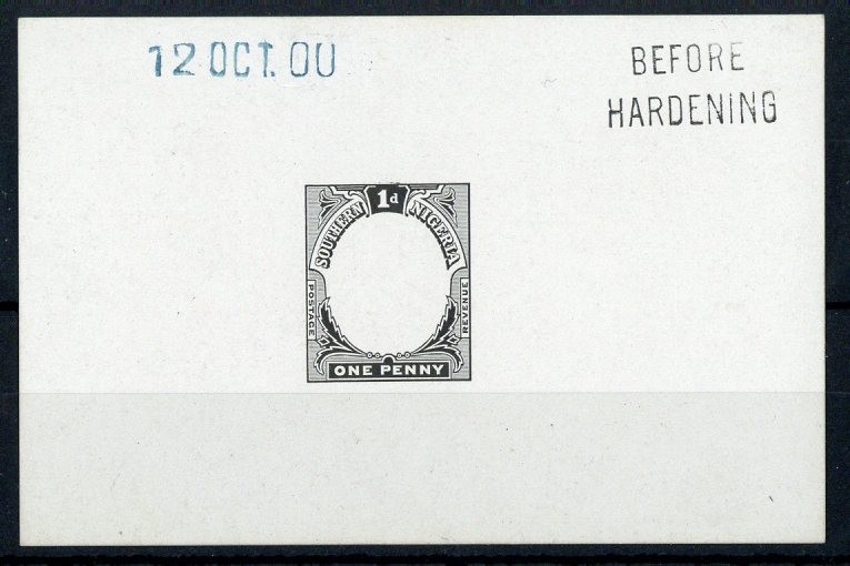 1d. frame in black on glazed card marked "before hardening" and dated "12 oct 00", fine