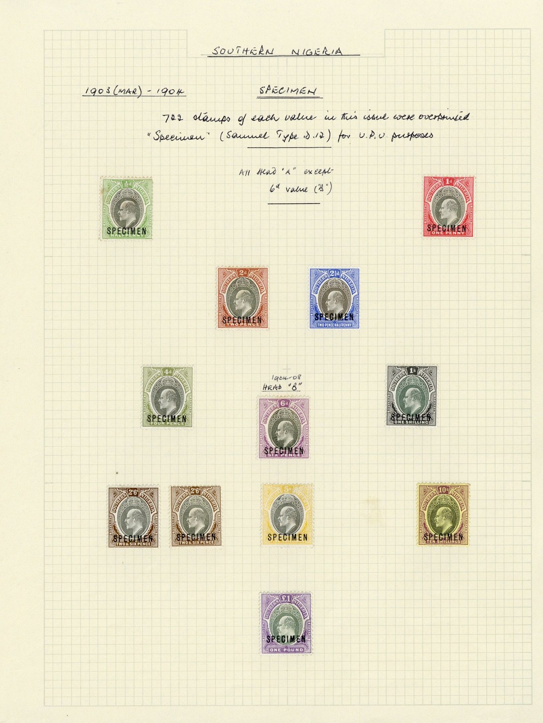 A collection on leaves with ½d. to £1 set of eleven overprinted "specimen", with additional 2/6d., large part original gum set to £1 with some additional shades and corner blocks of 1d. (10 and 4), 2½d. (16) and 4d. (9). A good lot. (73)