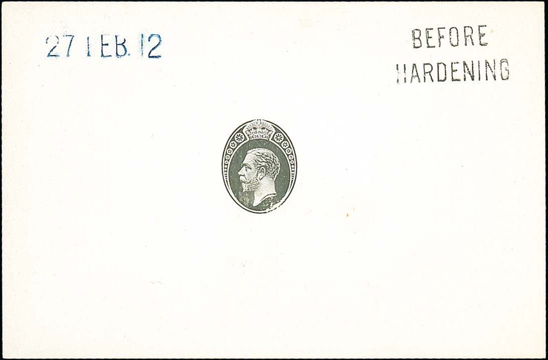 Vignette in black on glazed card, marked "before hardening" and dated "27 feb. 12". Photo