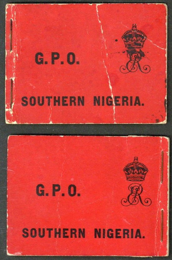 1906 2/1d. black on red, both left and right stapling; the first with only one stamp remaining and the cover with crease and corner damage; the second with a fairly fresh cover, but four stamps removed from one pane. S.G. SB2a
