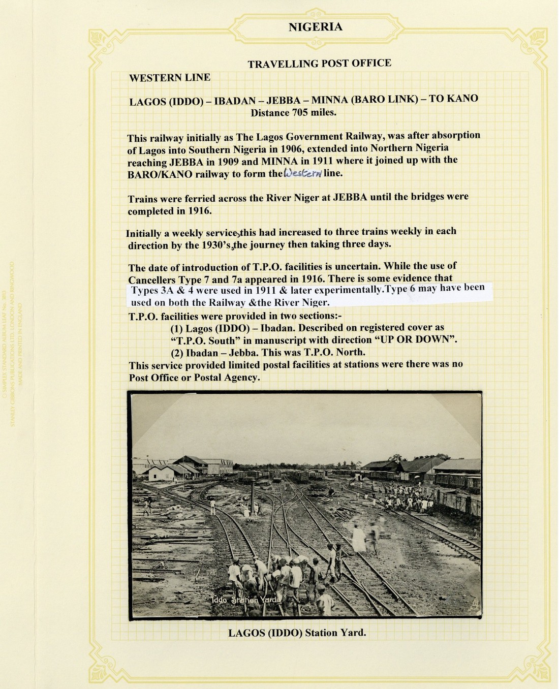 A small group (78, one used) comprising View of Iddo Wharf, Terminus Lagos Railway (creases), Lagos Government Railway Station Wasimi, Ibadan Gate, On the Lagos Railway, Ido Station (coloured), Iddo Station Yard and Opening of New Station Oshogbo, fine