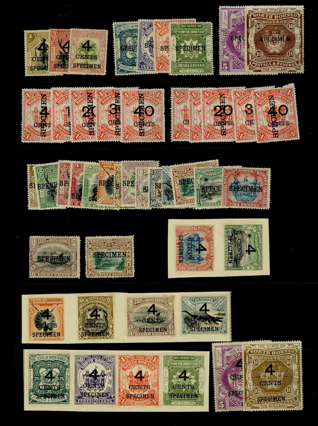 1888-1939 a selection (132) including 1895 surcharges, 1897-1902 1c. to 24c., 1899 surcharges, values to $2 affixed to three pieces, 1909-23 1c. to 24c., 1939 1c. to $5 and Postage Dues 1939 2c. to 10c., each overprinted or perforated "specimen", part to large part original gum, some minor imperfections, generally good to fine. S.G. between 45s and D89s, £1,930+