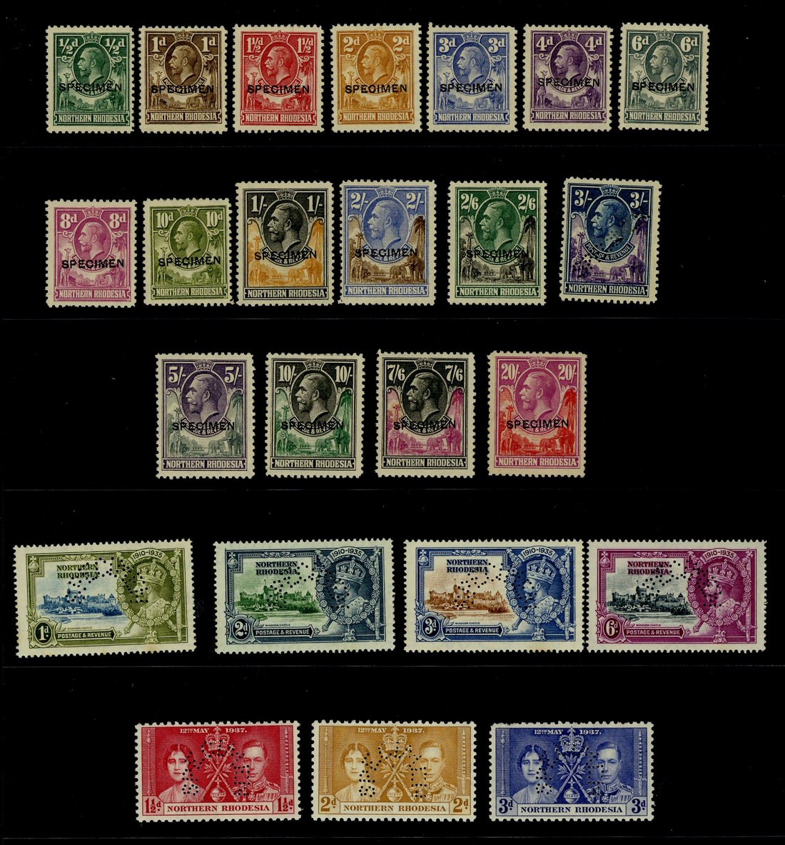 1925-29 ½d. to 20/-, 1935 Jubilee set and 1937 Coronation set, each overprinted or perforated "specimen", the Jubilee and Coronation sets with a few small faults, generally good to fine. S.G. between 1s and 41s, £1,340