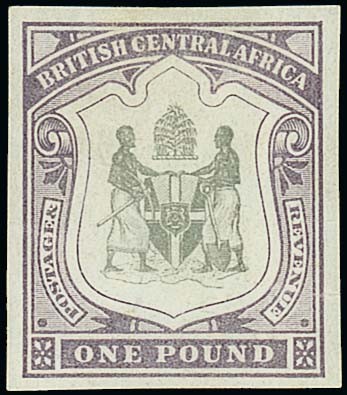 — £1 imperforate colour trial in black and dull purple (issued colours) on watermarked paper with small part original gum, fine. B.P.A. Certificate (1969). Photo