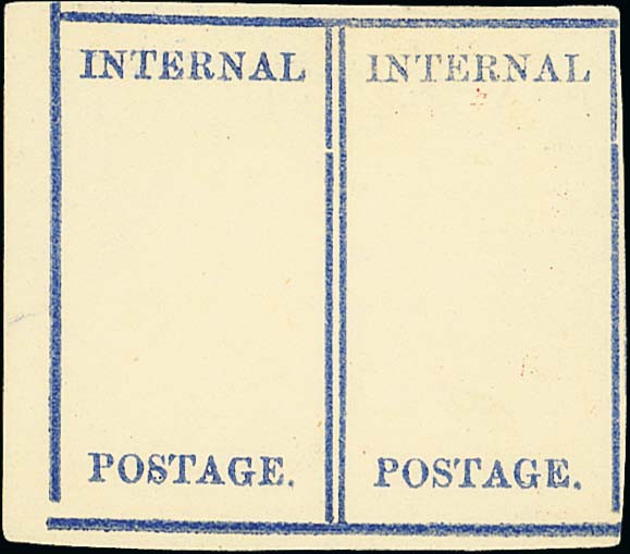 Setting II, imperf 1d. vermilion and pale ultramarine horizontal pair without controls, R.2/1-2, both variety centre omitted, fine unused without gum. Very rare. B.P.A. Certificate (2007). S.G. 55d var. Photo