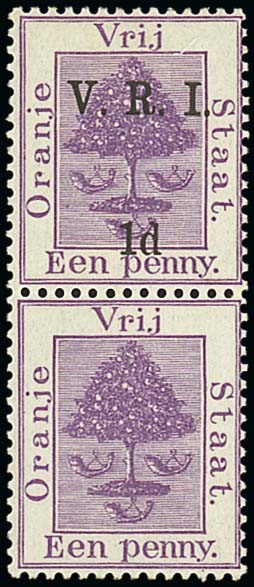 1d. on 1d. purple vertical pair, one without surcharge, fresh mint. Scarce. S.G. 102n, £550. Photo
