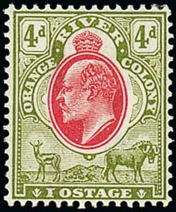 — 4d. scarlet and sage-green, "iostage" for "postage" error, large part original gum; fresh colours and fine. S.G. 144a, £1,200. Photo