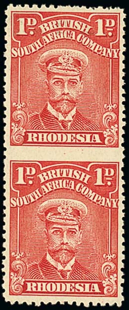 1d. bright rose-scarlet vertical pair, variety imperforate between, fine mint. Rare. B.P.A. Certificate (2004). S.G. 285b, £2,750. Photo