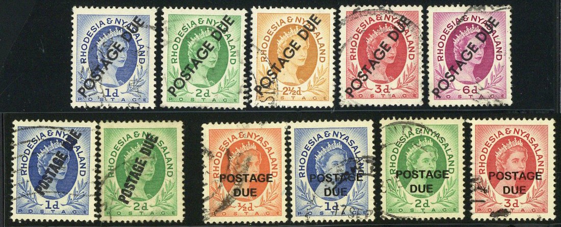 1959 "postage due" forged overprints, a selection (11) in three different types on values to 6d., all "used"F