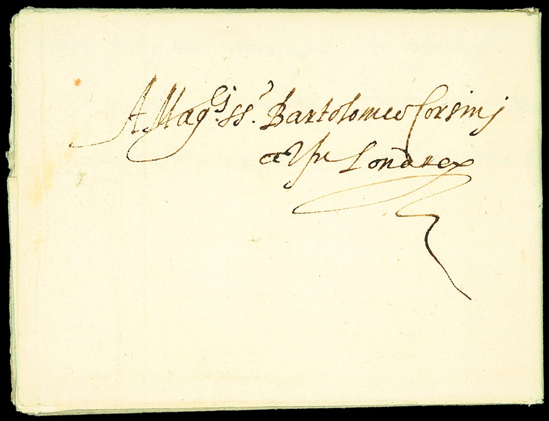 1585 (12 Aug.) entire letter addressed to Bartholomew Corsini in London, without postal markings, fine and a rare early letter. Photo