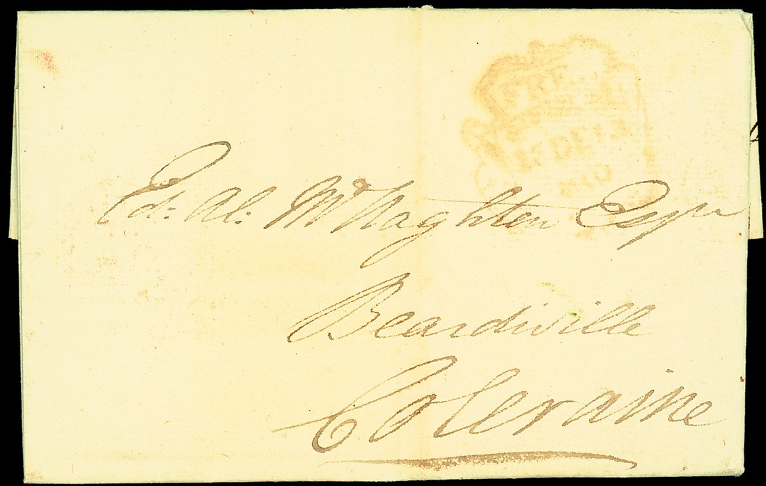 1810 (13 Dec.) entire letter to Coleraine with a good (for this) "free" Mermaid datestamp on the front and Mermaid datestamp on reverse; vertical filing fold clear of the markings, fine and scarce. Photo