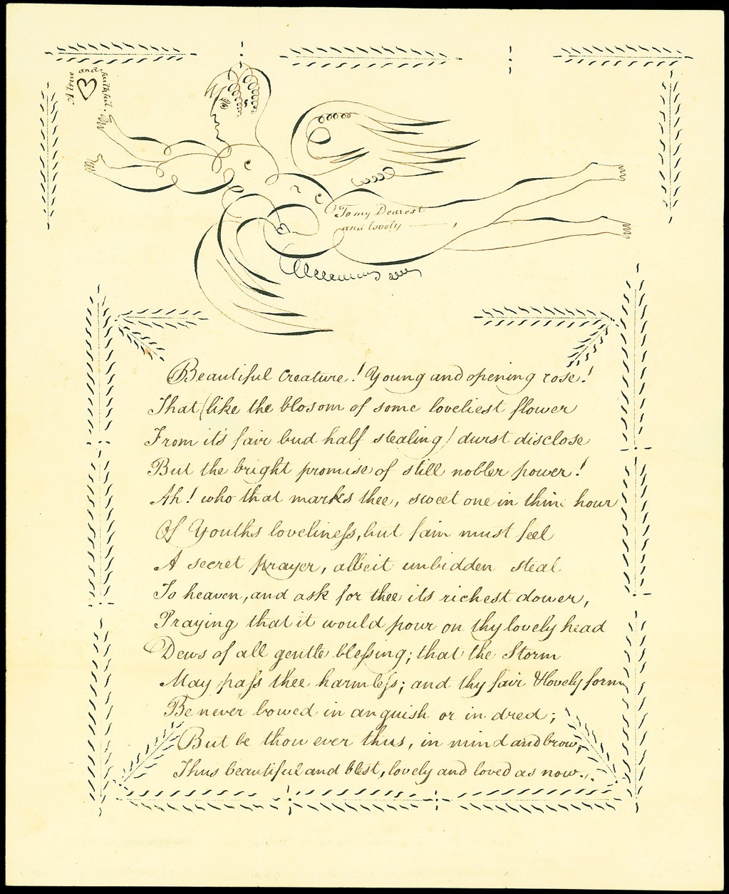 1829 (c.) two page entire letter addressed locally with manuscript 2 and on reverse undated "chippenham/96" mileage marking, containing a part printed and part manuscript Valentine; a few small splits around the folds, fine. Photo