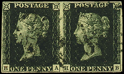 HA-HB (HB original Plate 1a re-entry) horizontal pair, close to good margins all round, black Maltese Cross cancellations; fine. Photo