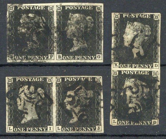 BF-BG and LI-LJ horizontal pairs and KE-KE vertical pair, LD small fault at foot, otherwise margins all round, black Maltese Cross cancellations, good to fine