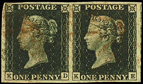 KD-KE horizontal pair, good to very large margins all round and showing a portion of the adjoining stamp at right, indistinct red Maltese Cross cancellations, KD with small thin, otherwise fine. Photo