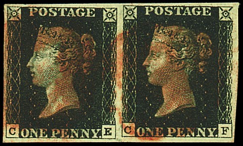 CE-CF horizontal pair, good to very large margins all round, red Maltese Cross cancellations; fine. Photo
