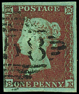 Plate 107: SK (inverted "S"), good to large margins, Irish numeral cancellation, fine. Specialised BS32ca, £800. Photo