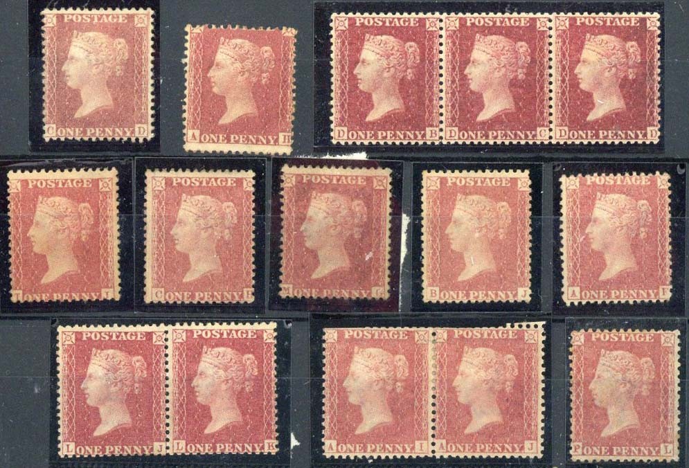 1d. Plate 36: TJ, Plate 39 CD, Plate 41 AH, Plate 47 DB-BB, Plate 49 CH, Plate 52 MG, Plate 56 AF, AI-AJ, BJ and LJ-LK, Plate 57 PL, part original gum or unused, several very fine